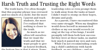 The truth hurts. I’ve often thought that this popular phrase was overused and too much of a cliché, but the more I parent and teach students, the more I’ve realized that nothing is closer to the truth.